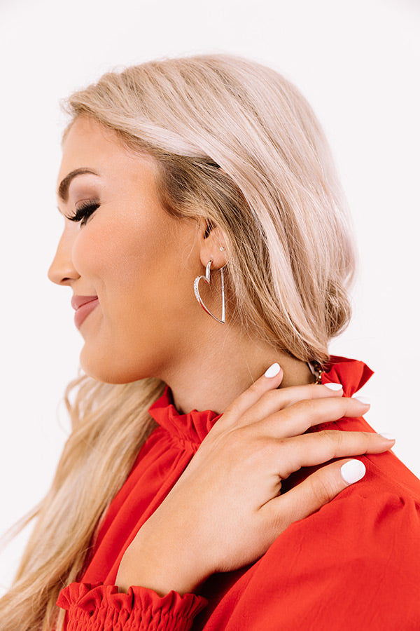 Some things are better together! Like milk and cookies, singing and showers, and hearts and hoops! Complete your look with the 'Ansley Heart Hoop Earrings in Silver' - a perfect pair in a delicate, asymmetrical design you'll fall madly in love with!