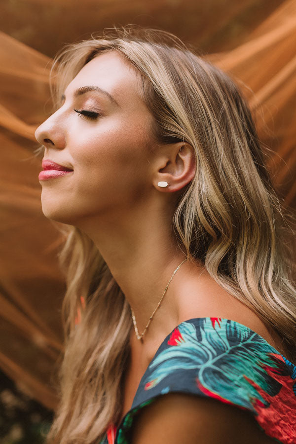 A take on our signature shape that is both minimalist and recognizable, the Barrett Stud Earrings in Gold are the definition of an everyday accessory! Loved for its metallic shine and dainty design, these are stud earrings that you can pair with anything! If you're looking for a classic that never goes out of style, the Barrett Stud Earrings should be at the top of your list! • 14k Gold Plated Over Brass • Size: 0.4"L x 0.21"W on post