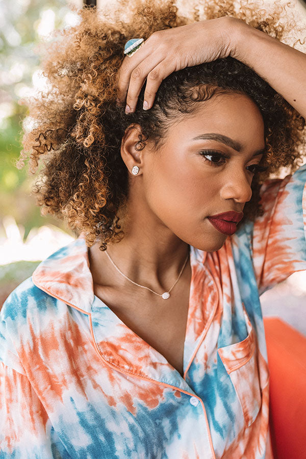 The "Cade Gold Stud Earrings in Iridescent Drusy" are made for the classic beauty, adding the perfect touch of sparkle for every occasion! Whether you want to dress up the everyday or shine in the spotlight, these stud earrings are sure to impress! Loved for their stunning detail and texture, the "Cade Gold Stud Earrings" deserve a spot in your jewelry box!