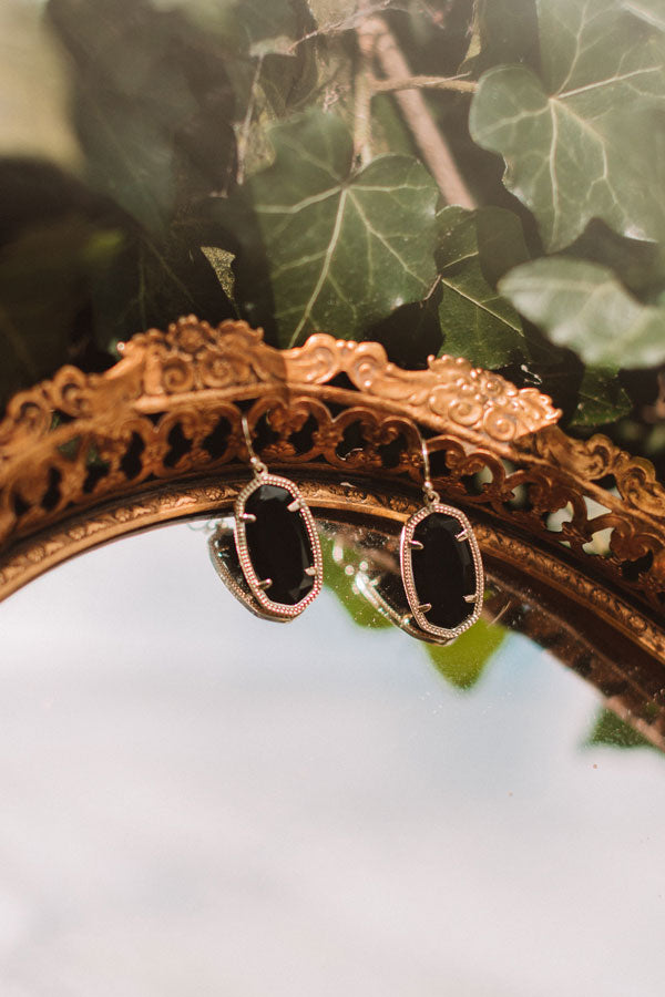 Kendra Scott Dani Gold Drop Earrings in Black Opaque Glass