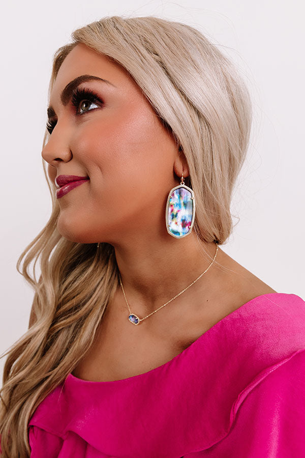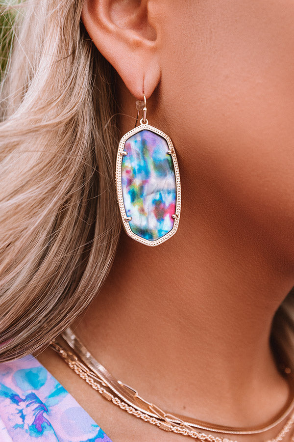 Our icon, who made us believe in love at first wear. Recognizably Kendra Scott with our custom oval shape, the Danielle Gold Statement Earrings in Teal Tie Dye Illusion make every stone (and person!) look good.