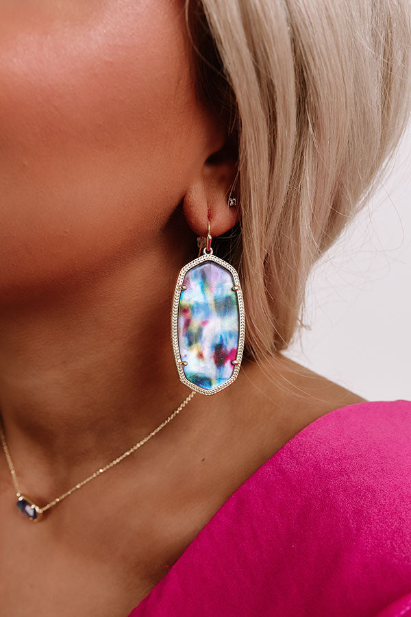 Kendra Scott Danielle Gold Statement Earrings in Teal Tie Dye Illusion