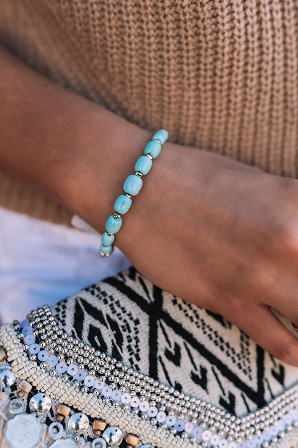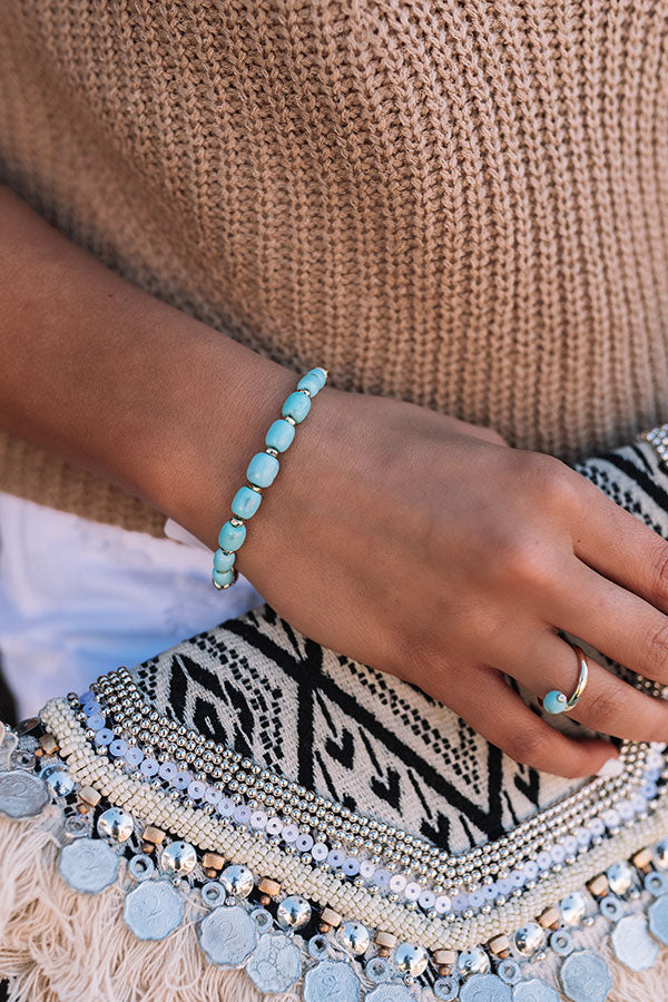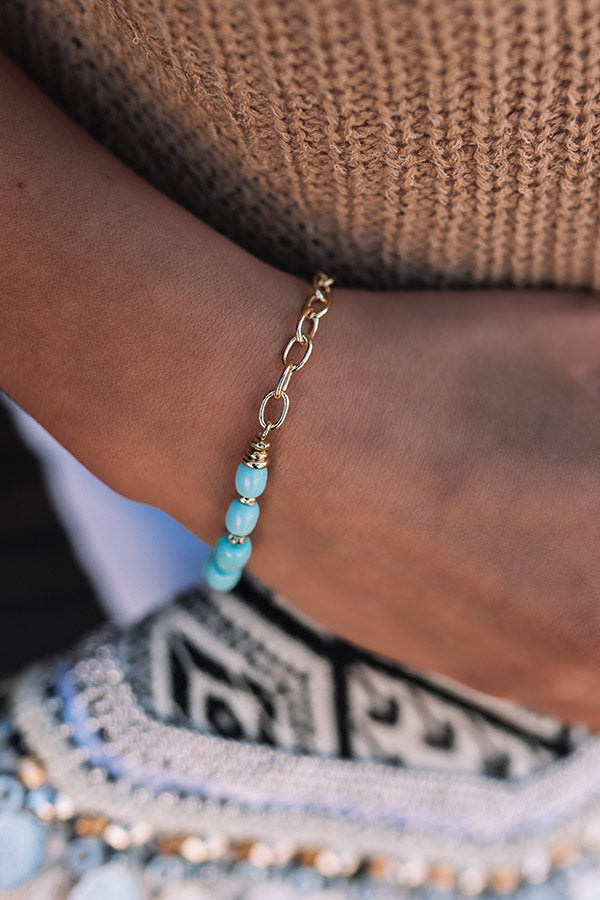 Sunny days are calling for the Demi Gold Stretch Bracelet in Light Blue Magnesite! Add fresh femininity to any stack with vibrant, trend-setting textures and a statement chunky chain. With a stretch band meets hard chain design, the Demi Gold Stretch Bracelet in White Light Blue Magnesite calls for all-inclusive sizing and easy on/off wear.