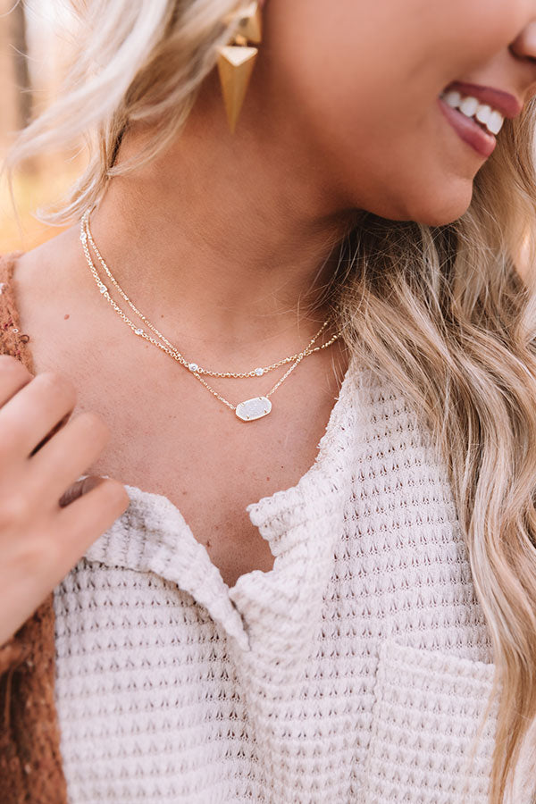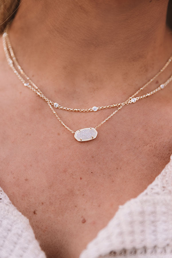 Layering is easier than ever with our Elisa Gold Multi Strand Necklace in Iridescent Drusy, featuring an iconic KS pendant pre-styled with a thoughtfully designed double chain.