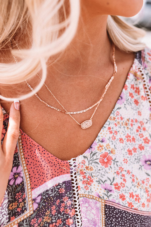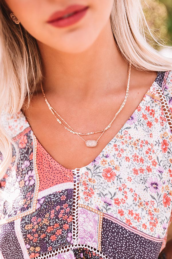 Layering is easier than ever with our "Elisa Gold Multi Strand Necklace in Rose Gold Drusy!" This gold multi strand necklace features a classic Kendra style, with a thoughtfully designed double chain! Throw it on with your favorite tee or pair it with your party dress, you can't go wrong with the "Elisa Gold Multi Strand Necklace!"