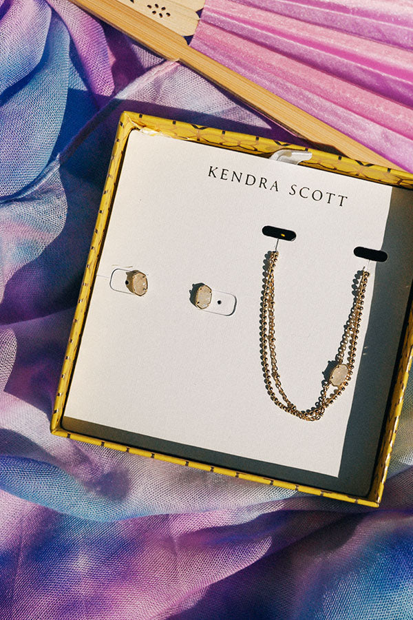 Kendra Scott Emilie Multi Strand Necklace And Earrings Gift Set in Iridescent Drusy