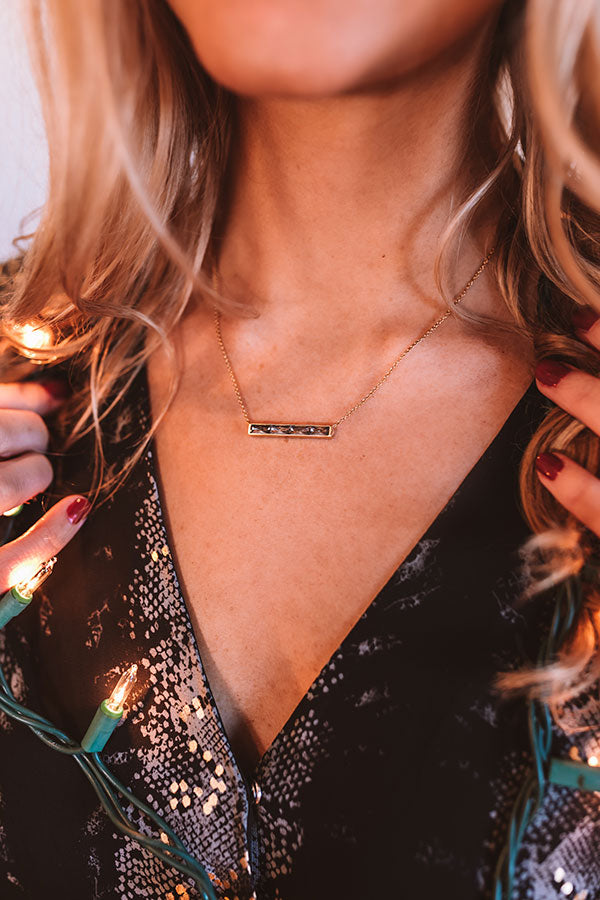 Bring Art Deco-era inspired high shine to your everyday through the 'Jack Vintage Gold Pendant Necklace in Charcoal Gray Crystal,' certain to catch the eye whether work on its own or layered!