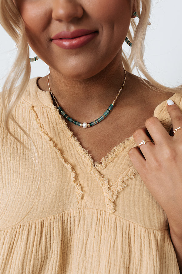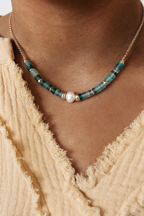 Bring the beach to your jewelry box with the Lila Gold Strand Necklace in Matte Sea Green! Combining organic, textural beads and iridescent pearl, the Lila Strand Necklace is the perfect layer to complement your clean, summer whites and bright, colorful hues