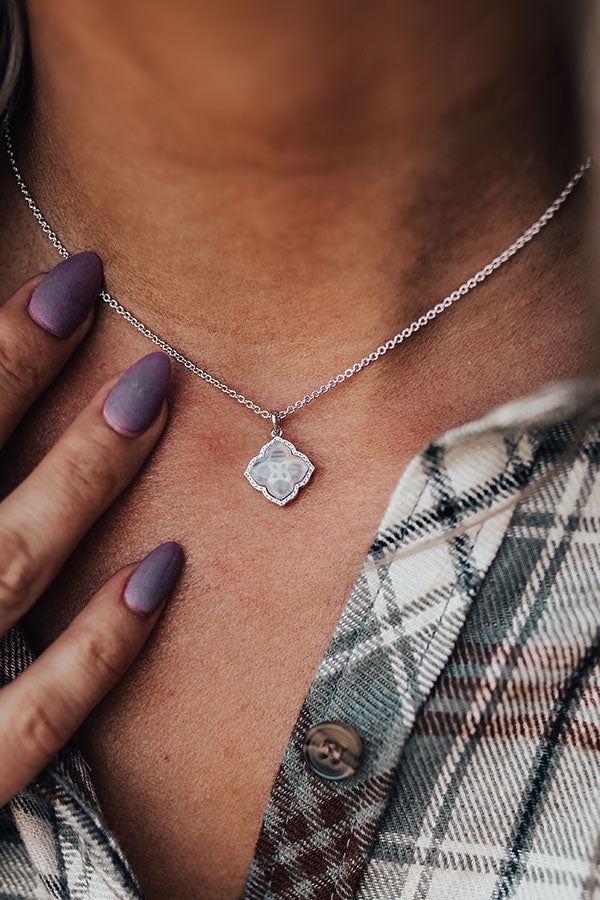 Carved stones pay a homage to Kendra Scott's iconic medallion on its 10 year anniversary, no two alike. Surrounded by the trademark etched frame, the Mallory Silver Pendant Necklace in Gray Banded Agate brings one-of-a-kind character to everyday layers.