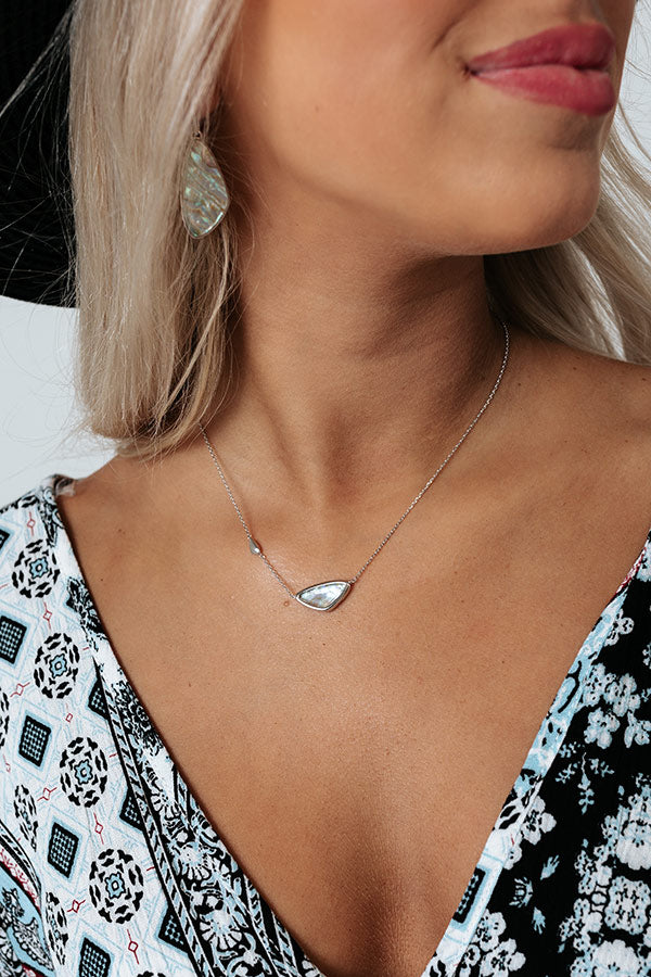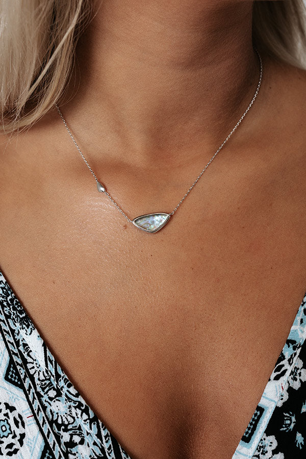 A soon-to-be-classic, the Margot Rhodium Pendant Necklace in Iridescent Abalone is a delicate pendant complemented by an organic, pebble-inspired shape. Soften your modern pieces with this fresh little favorite or pair with your collection of eclectic, everyday designs.