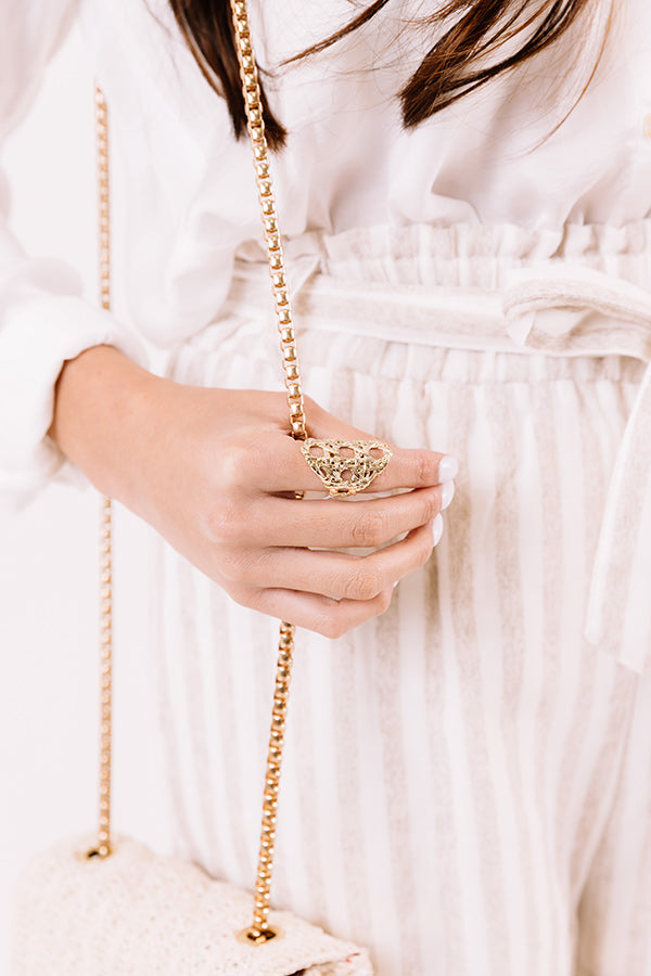 Looking for your new favorite statement? Look no further. The Natalie Cocktail Ring in Gold is reminiscent of Art Deco bold with an organic textural update. Featuring an adjustable design, fit the Natalie Cocktail Ring in Gold to any size you please! Metal: 14k Gold Plated Over Brass