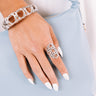 Looking for your new favorite statement? Look no further. The Natalie Cocktail Ring in Silver is reminiscent of Art Deco bold with an organic textural update. Featuring an adjustable design, fit the Natalie Cocktail Ring in Silver to any size you please! Metal: Rhodium Plated Over Brass