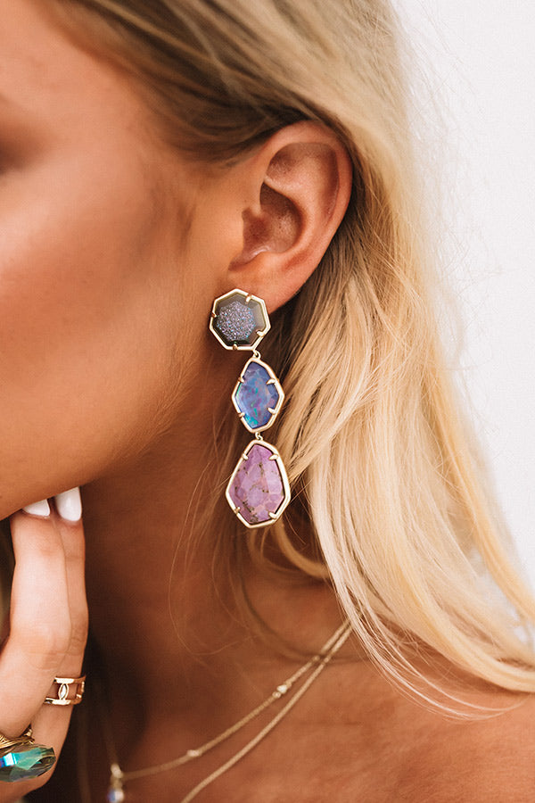 A mix of three geometric stones linked together create the masterpiece that is the "Nina Clip On Gold Linear Earrings in Purple Mix" (for those who are pierced and not pierced)!