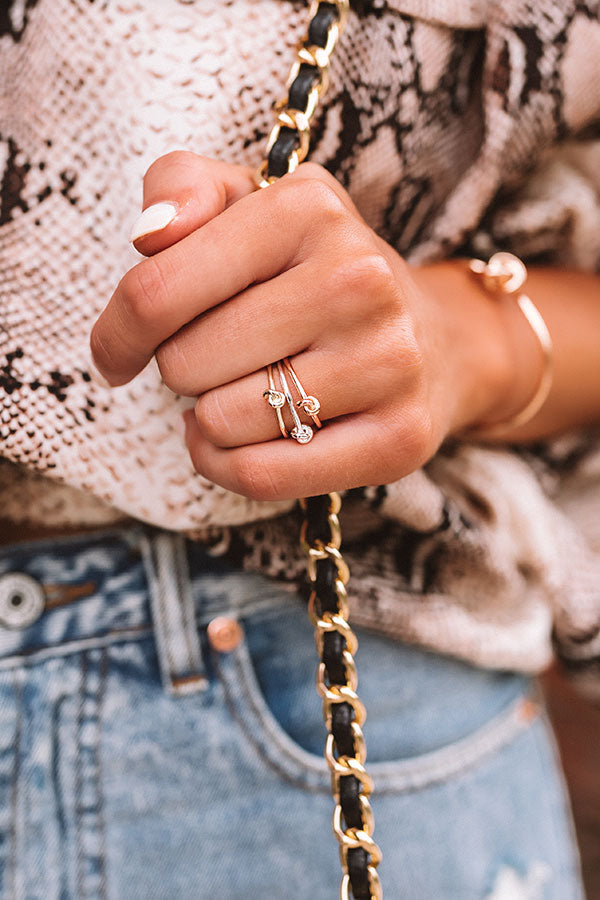 Beautiful and meaningful, knots have been used in jewelry design to represent love and unity since antiquity! The "Presleigh Ring Set in Mixed Metal" features our take on the technique in three band rings of silver, gold, and rose gold! This ring set is the perfect start to your ring stack! We know you'll enjoy the subtle romance the "Presleigh Ring Set" brings to the everyday!