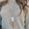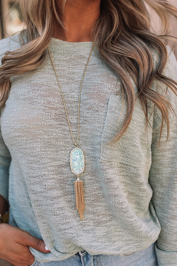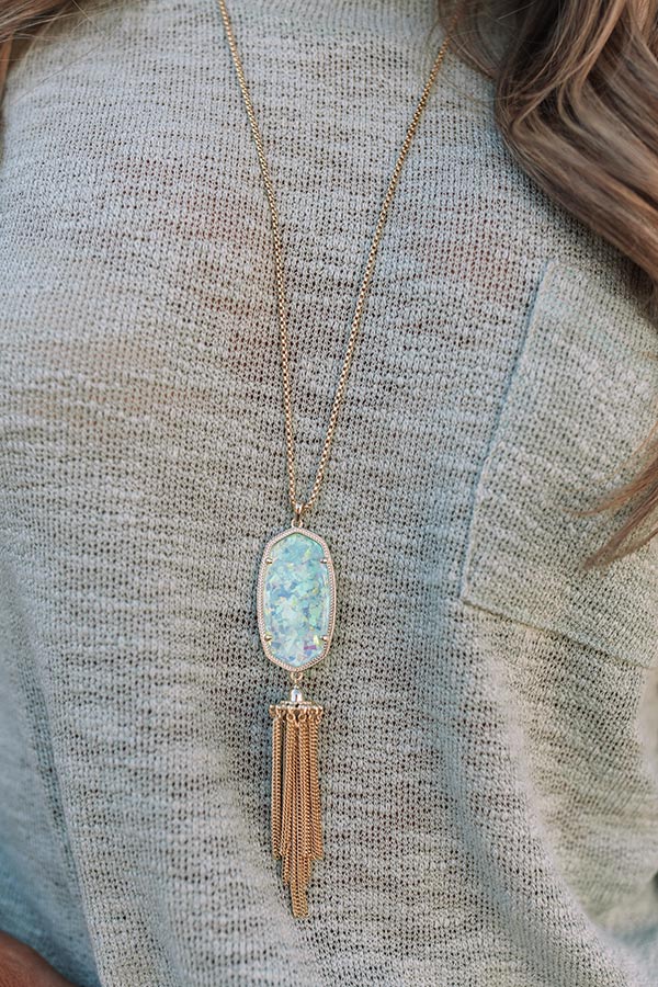 You know her, you love her: She's the Rayne Gold Long Pendant Necklace in Iridescent Mint Illusion. With our signature oval shape and playful tassel, this necklace brings you the perfect compromise of fringy and fun while still being timeless.