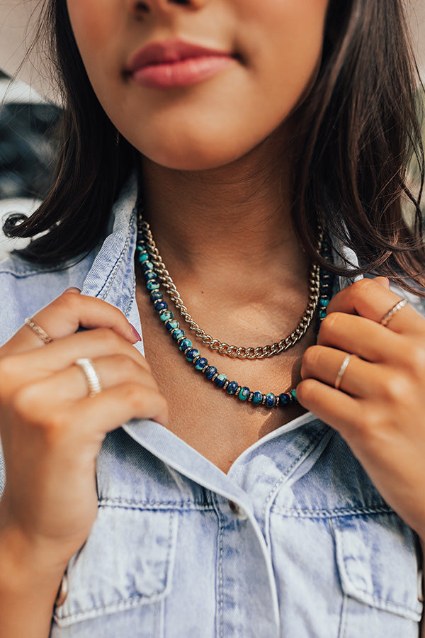 Get the best of both worlds with the Rebecca Gold Multi Strand Necklace in Bronze Veined Lapis Turquoise Magnesite. Featuring custom beads and a chunky chain, this pre-layered necklace makes a stylish statement with both color and shine.