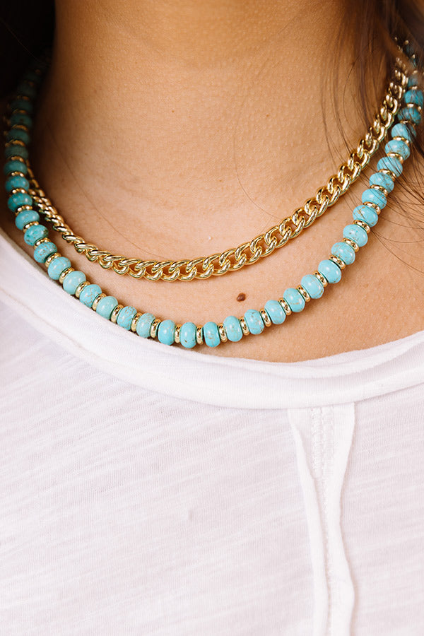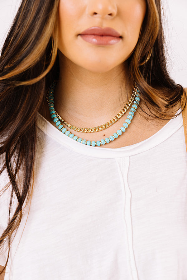 A bohemian blend of breezy and bold, the 'Rebecca Gold Multi Strand Necklace in Variegated Turquoise Magnesite' creates the perfect balance in a pre-layered look! Simple strands meet curated colorful, for a KS statement with a softened edge!