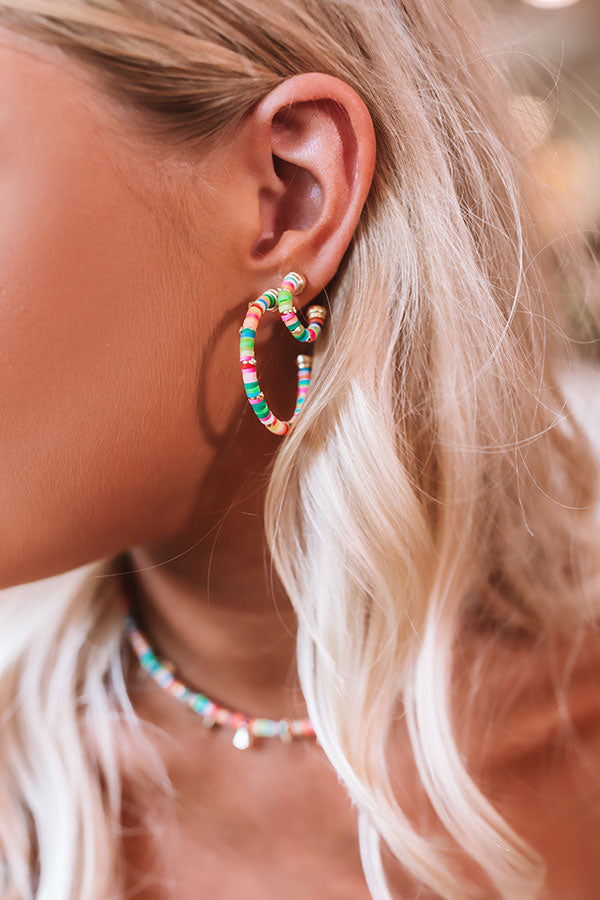 The "Reece Gold Small Hoop Earrings in Neon Mix" are playful and so lightweight, making them a no brainer statement! Our favorite detail? Subtle stud accents that add that little extra something! Metal: 14k Gold Plated Over Brass Material: Neon Mix Size: 1.25" inner diameter on earpost