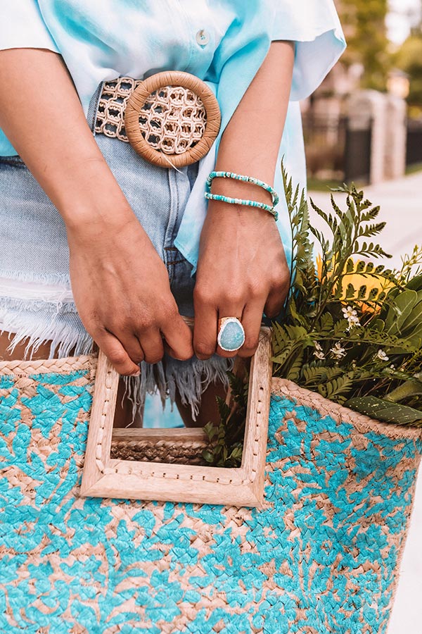 The "Reece Gold Wrap Bracelet in Sea Green Mix" is sure to leave its mark on your wardrobe! Ever versatile, you can also wear the this wrap bracelet as a 14" choker or combine two of them by the magnetic closures to create one long necklace!