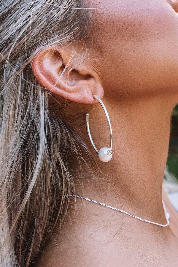 The "Regina Bright Silver Hoop Earrings in Pearl" are simple and classic, yet still completely on trend! These simple bright silver hoop earrings feature a minimalist silhouette that truly puts the pearls on display! If you're looking for a new, modern take on a timeless material, the "Regina Bright Silver Hoop Earrings" are sure to become a staple in your collection! Metal: Bright Silver Plated Over Brass Size: 1.8"L x 1.4"W, 0.5" pearl Material: Cultured Baroque Pearl