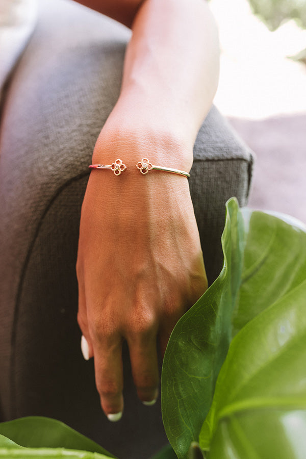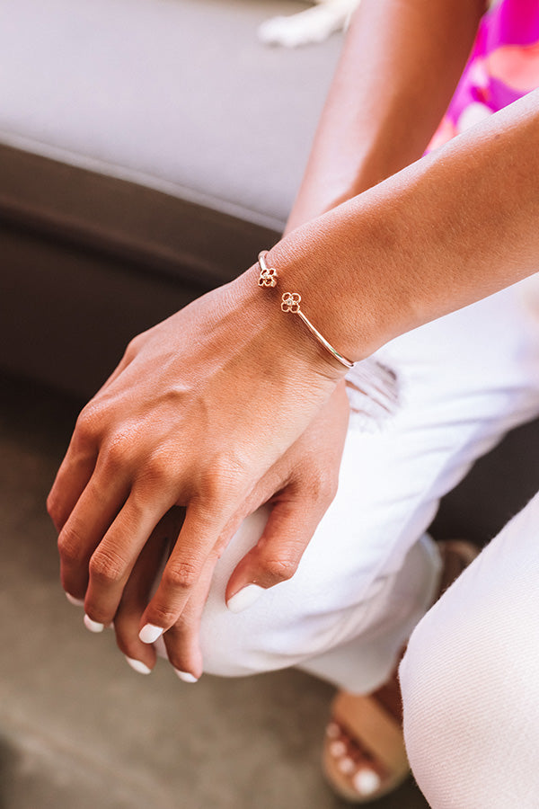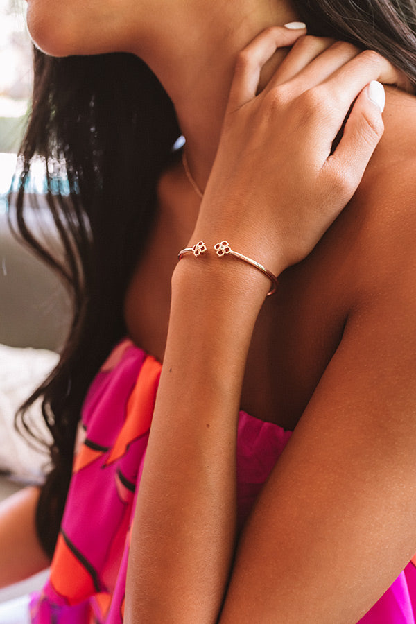 Meet the newest addition to your bracelet stack, the "Rue Cuff Bracelet in Rose Gold!" This smooth, delicate rose gold cuff bracelet shows off a re-imagined version our signature medallion! Whether you layer it or leave it solo, the "Rue Cuff Bracelet" is a piece you'll never question for your outfit!