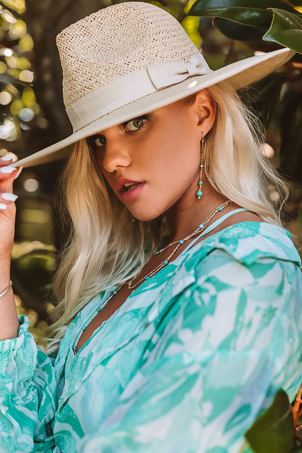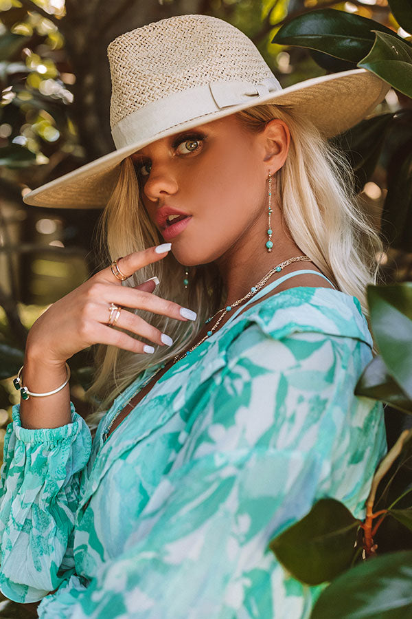 Lightweight and delicate, the "Scarlet Gold Linear Earrings in Turquoise" make the most effortless statement with an eclectic mix of chain and beads!