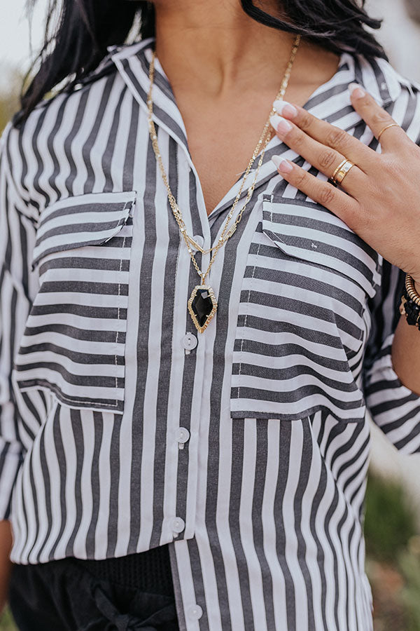 A pre-layered look you'll rock again and again. The Tessa Gold Multi Strand Necklace in Black Obsidian is a familiar pentagon-shape, elongated with an all-new textured frame. Featuring a pre-layered Chain, the Tessa Multi Strand Necklace makes layering look so easy.