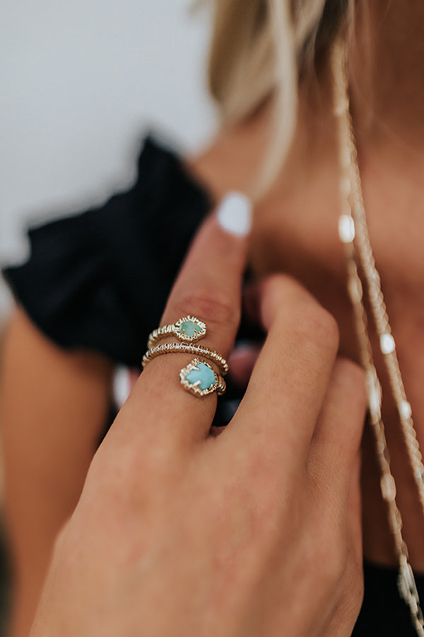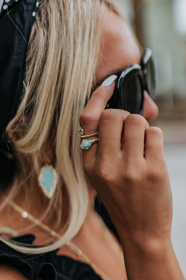 Your favorite stack, plus this statement? What's not to love?! The Tessa Wrap Ring in Light Blue Magnesite is our fresh take on a familiar KS shape. Accented by a textural wrap frame, each geometric stone adds a little modern edge for when you dress up your digits.