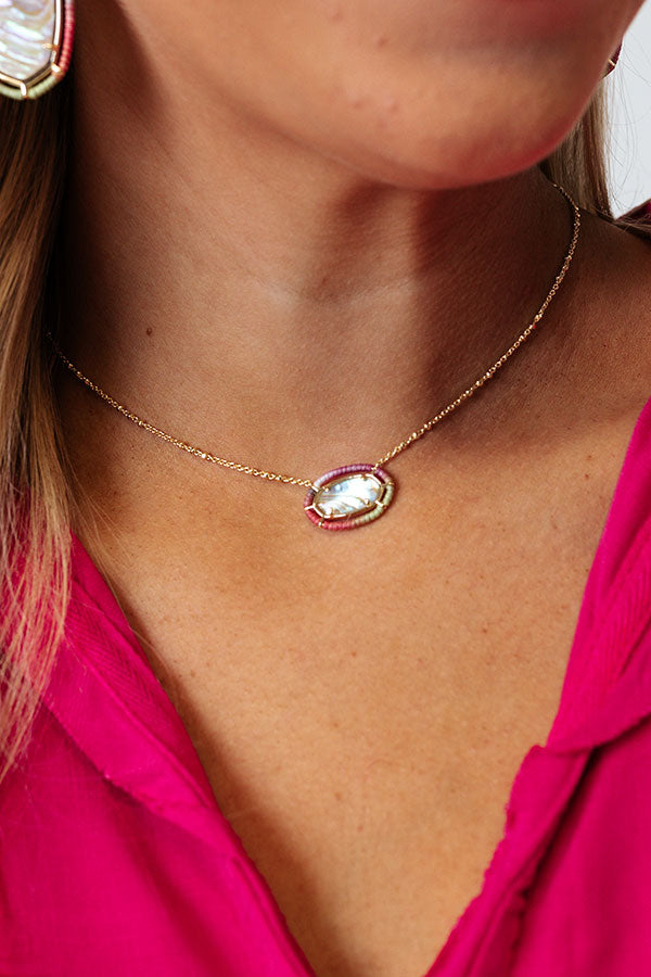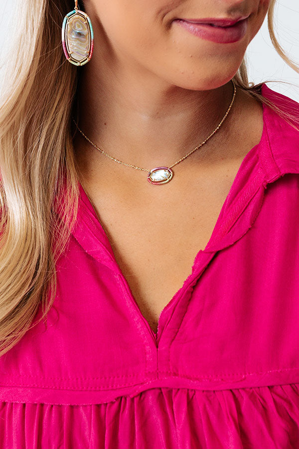 A Kendra Scott classic gets a handcrafted update. Featuring Kendra Scott's signature shape and a vibrant, wrapped frame Metal: 14k Gold Plated Over Brass Material: Glass-Plated Iridescent Abalone, Pastel Ombre Cord Size: 0.8"L x 0.48"W, 15" chain with 2" extender Closure: Lobster clasp with single adjustable sliding bead