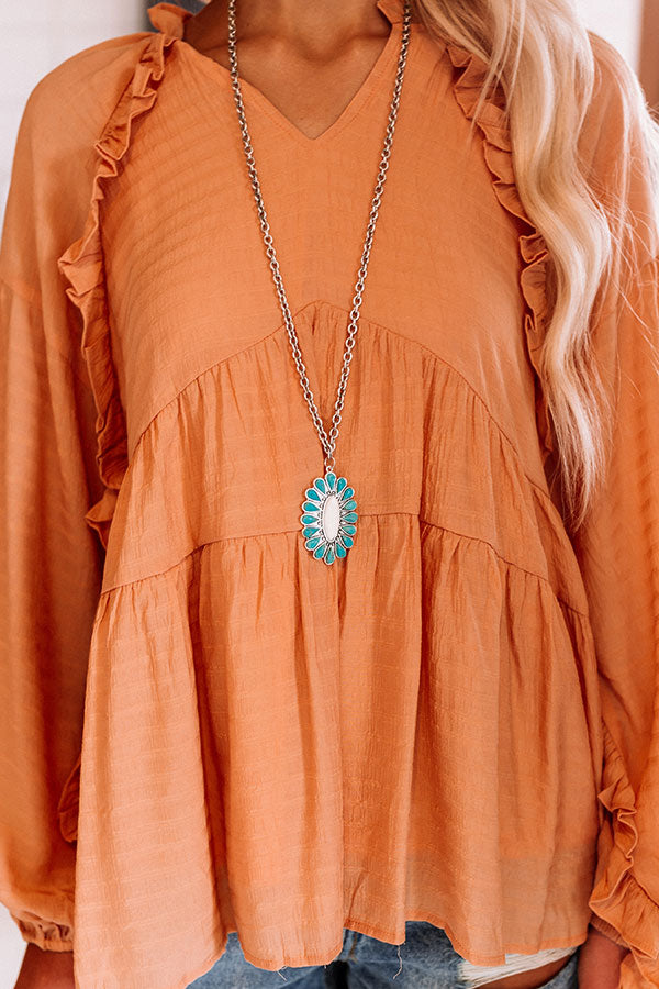 Make your outfit pop with our gorgeous 'Keep At Bay' necklace featuring a long silver chain with a large flowering turquoise stone pendant!