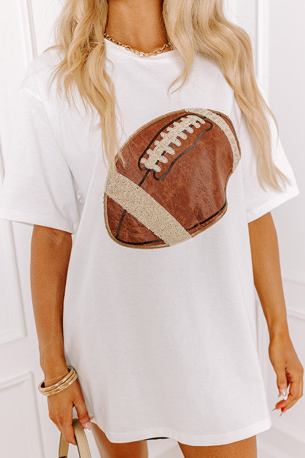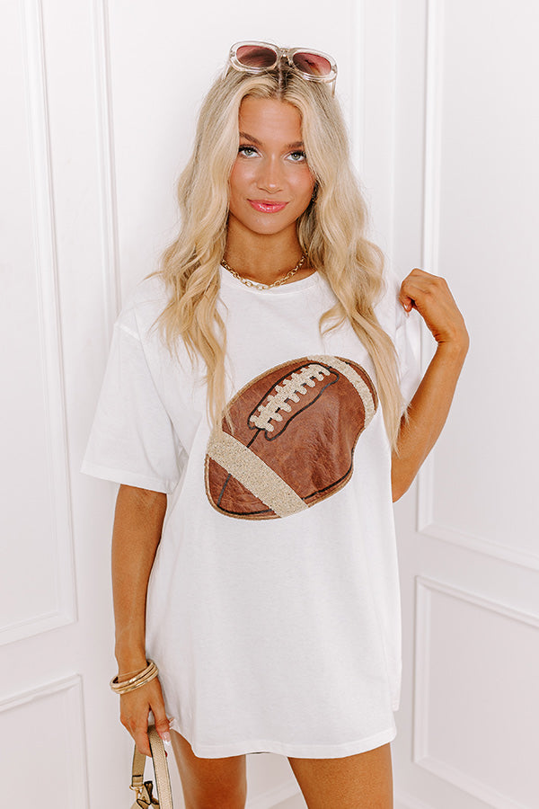 Kickoff Cutie Embroidered Oversized Tee in White