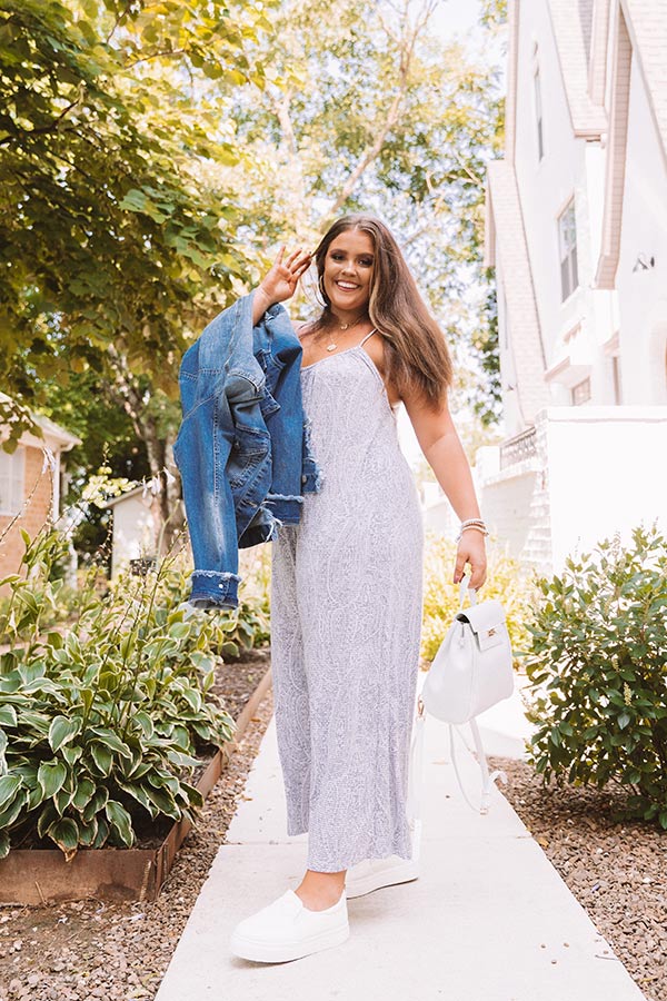 Plus Size - Keep your look kind and casual with this adorable grey jumpsuit featuring soft and flowy lightweight material with a pretty white abstract pattern, a v-cut neckline with spaghetti straps that tie across an open back, and an ultra slouched silhouette that falls into straight ankle-length hemlines!