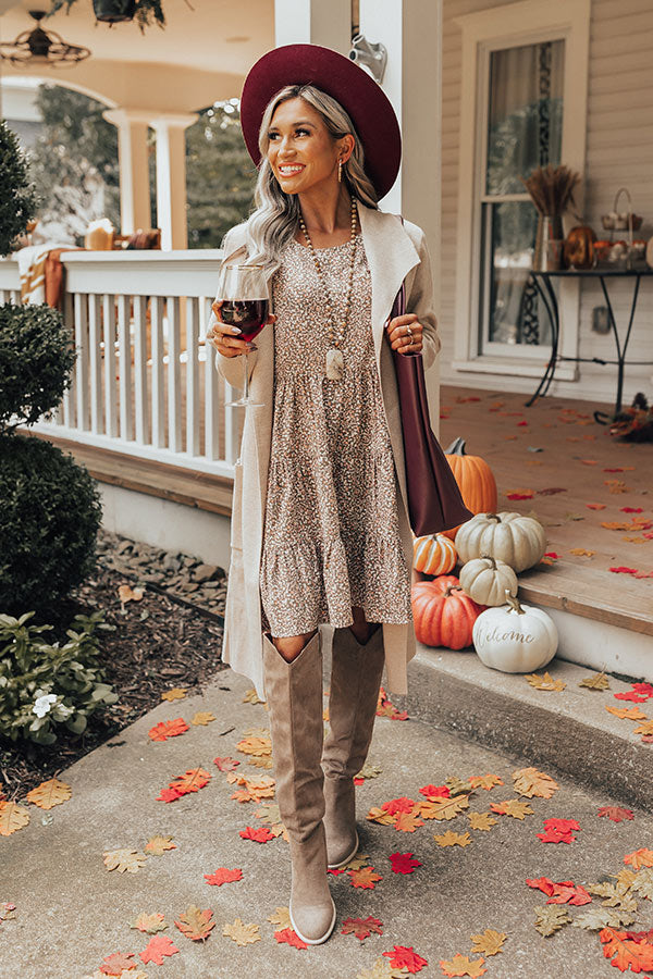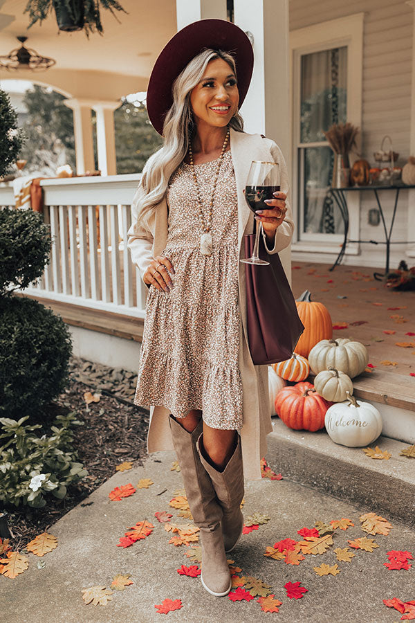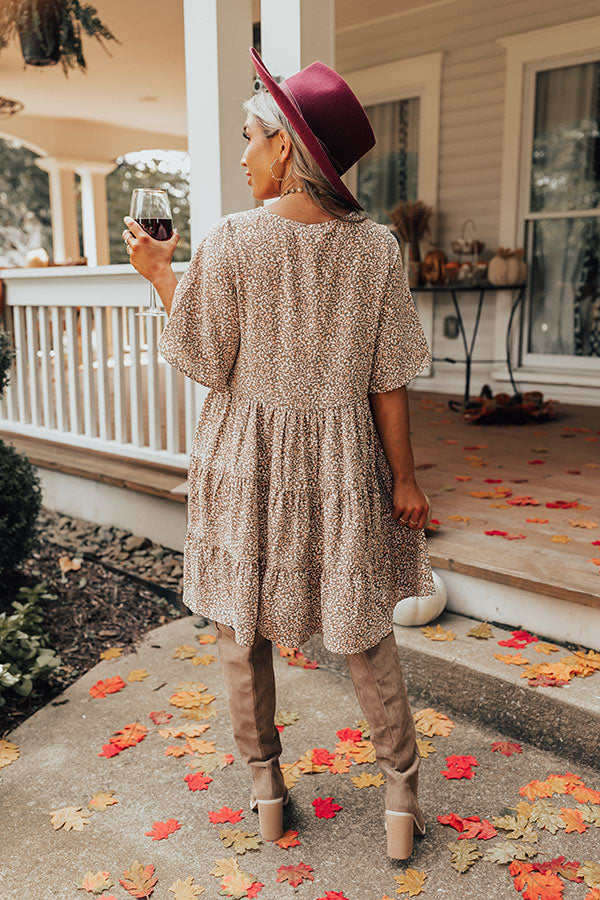 Dress to impress in our darling mocha colored 'Kind Conversation Tunic Dress' featuring lightweight flowy material patterned with a darling floral print, a rounded neckline, long loose sleeves, and a relaxed tired skirt silhouette that falls into an uneven upper-thigh length hemline!