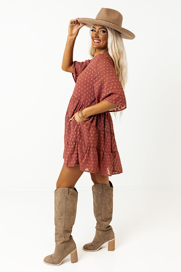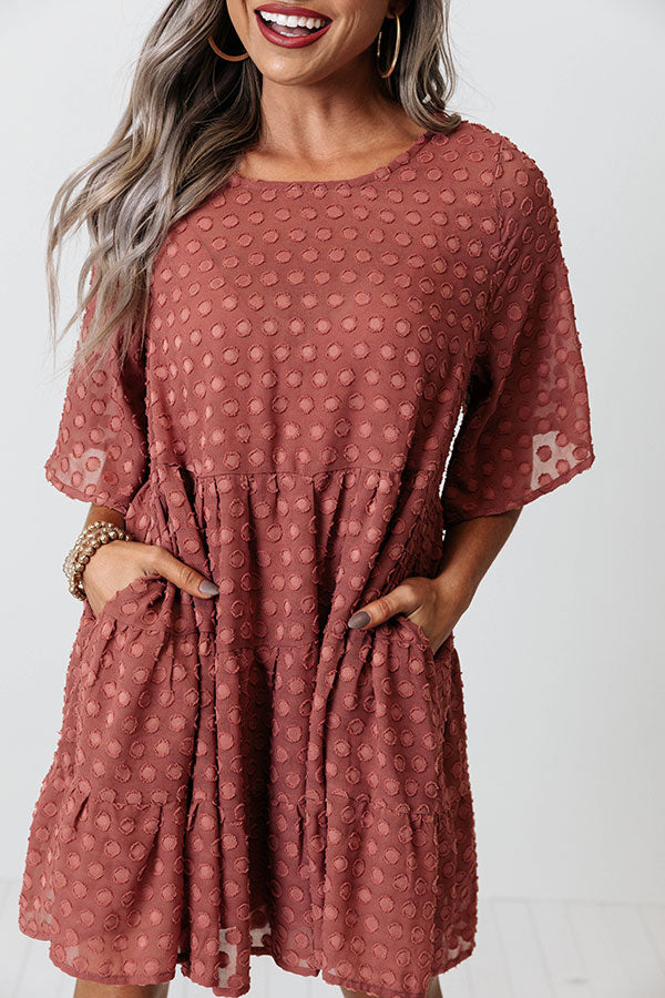 Dress to impress in our darling blush colored 'Kind Conversation Tunic Dress' featuring lightweight flowy material with polka dot texturing, a rounded neckline, long loose sleeves, and a relaxed tired skirt silhouette that falls into an uneven upper-thigh length hemline!