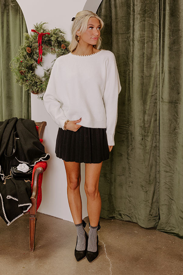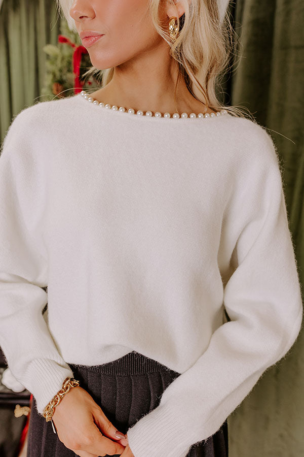 - Elevate your everyday style with this sweet sweater top! With its pearl embellish neckline, it adds a touch of glam to any outfit. Pair it with a chic skirt and boots and be ready for all the compliments to come your way!