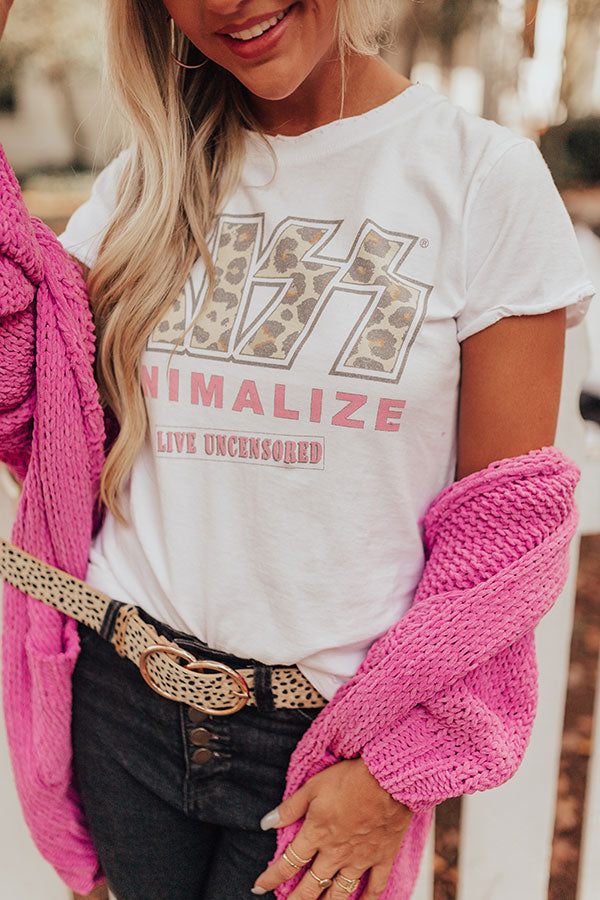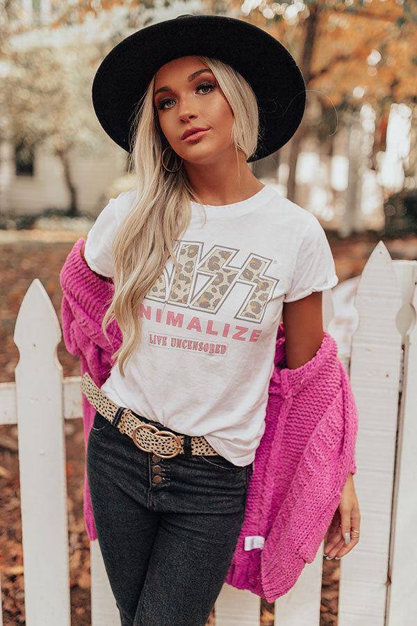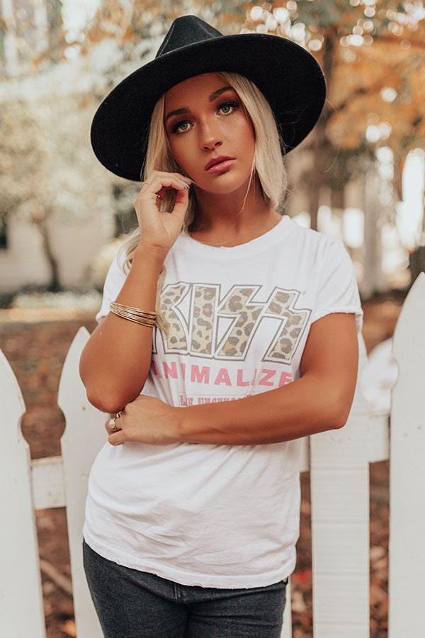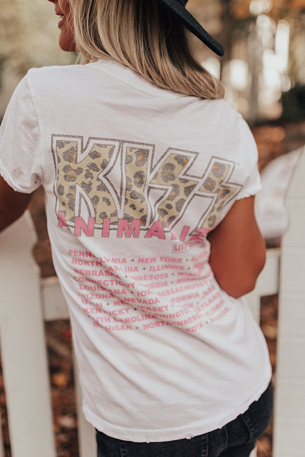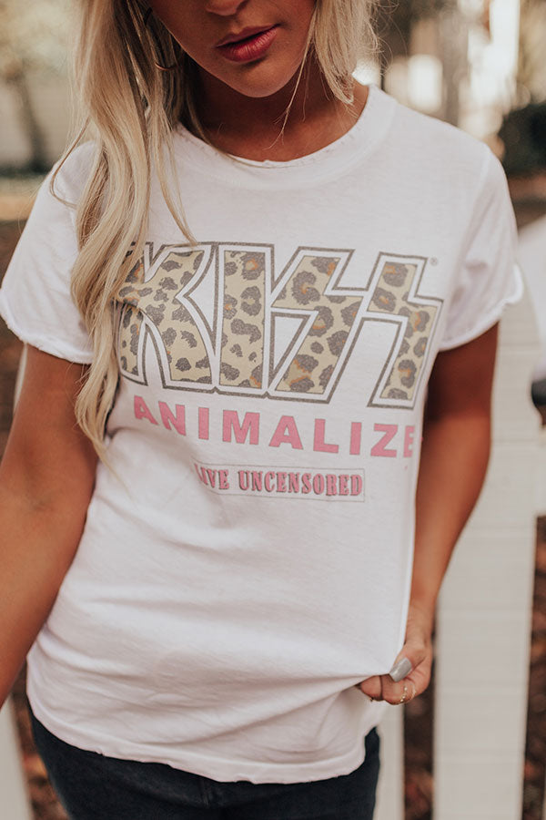 A spotlight on the American rock band KISS and their 1984 Animalize Live Uncensored Tour. Includes front graphic and back graphic with KISS tour locations in the USA. Made from super soft cotton, with a popular fitted style, distressed edges, and ribbed crew neck. Measurements