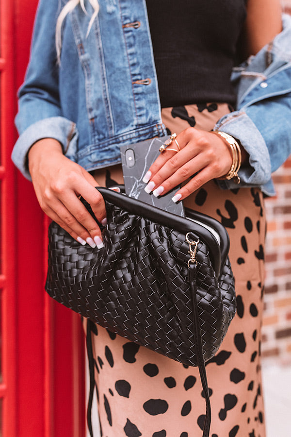 A girl can never have too many handbags, so don't hesitate to add our adorable black "Kiss On The Chic Crossbody" to your cart with its lightweight woven faux leather material, removable single shoulder strap, and a spacious pouch with a stiff snap shut closure!