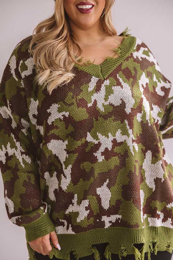 Kisses And Camo Knit Sweater Curves