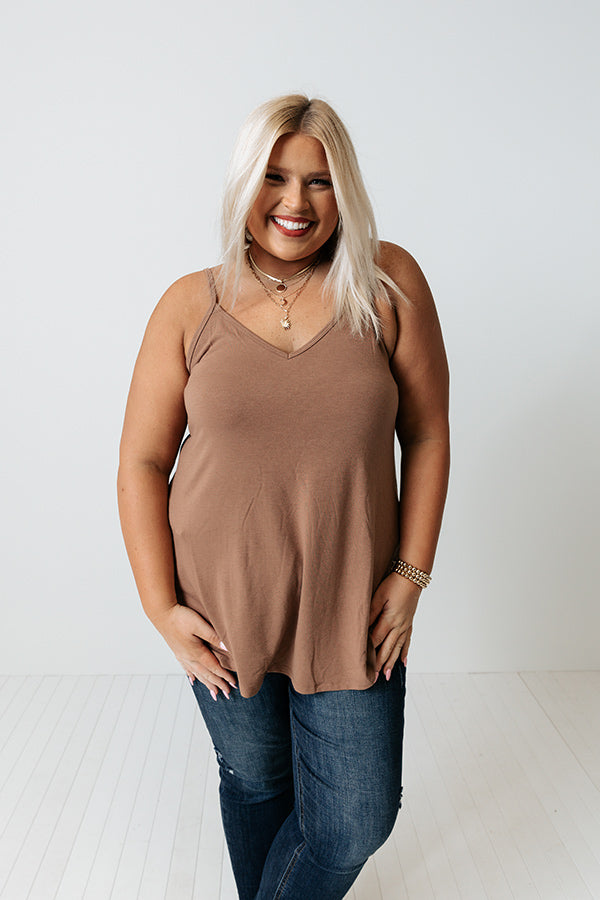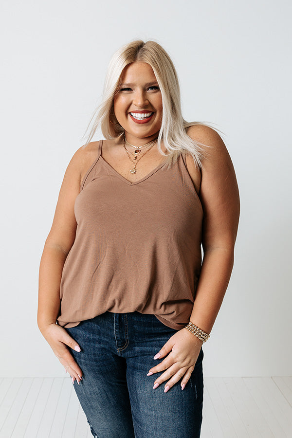 Kisses On The Coast Shift Tank In Light Chocolate Curves