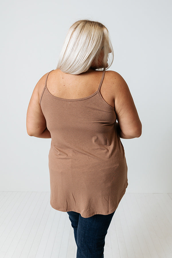 Take on any day in our basic plus size light chocolate colored 'Kisses On The Coast Shift Tank' featuring lightweight breezy material, a v-cut neckline, spaghetti straps, and an ultra relaxed silhouette that falls into a rounded hemline! Measurements