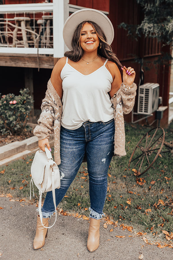 Kisses On The Coast Shift Tank In Light Stone Curves