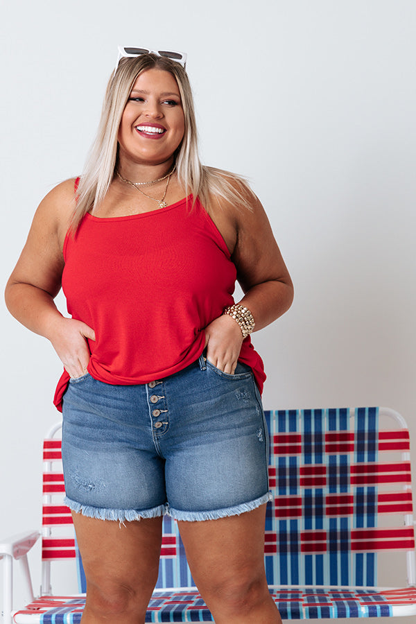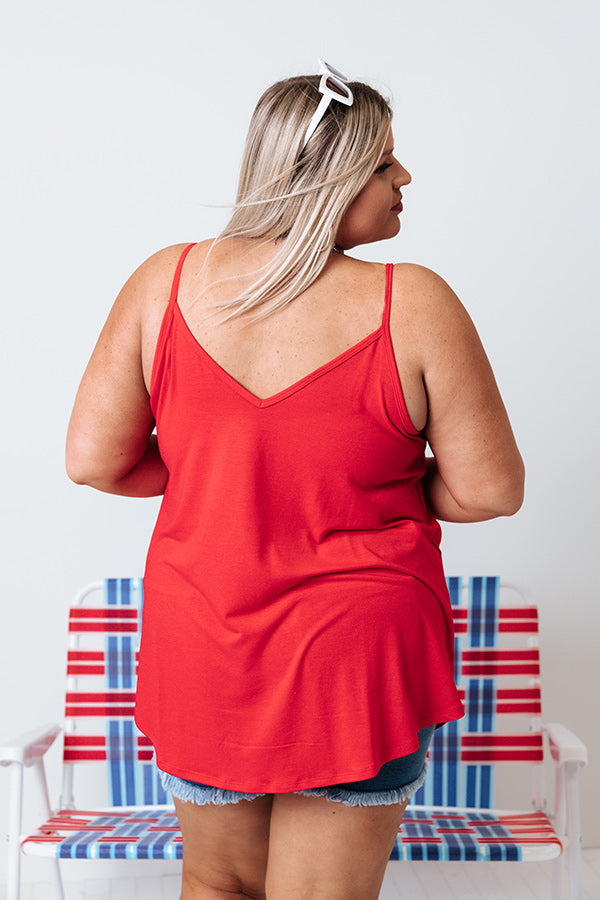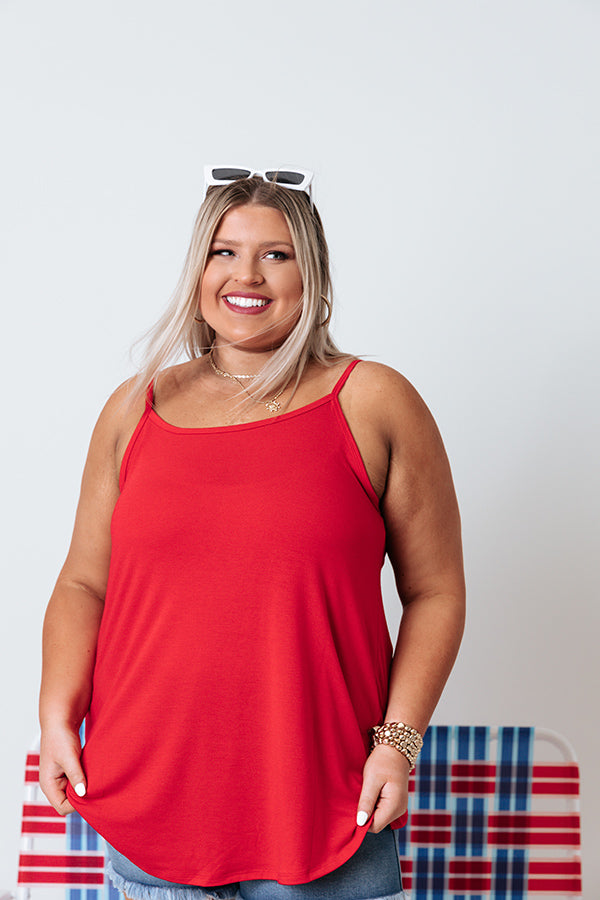 Plus Size - Take on any day in our basic red 'Kisses On The Coast Shift Tank' featuring lightweight breezy material, a v-cut neckline, spaghetti straps, and an ultra relaxed silhouette that falls into a rounded hemline! Measurements
