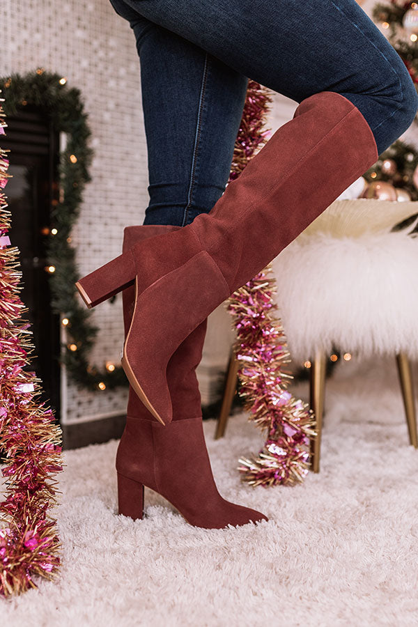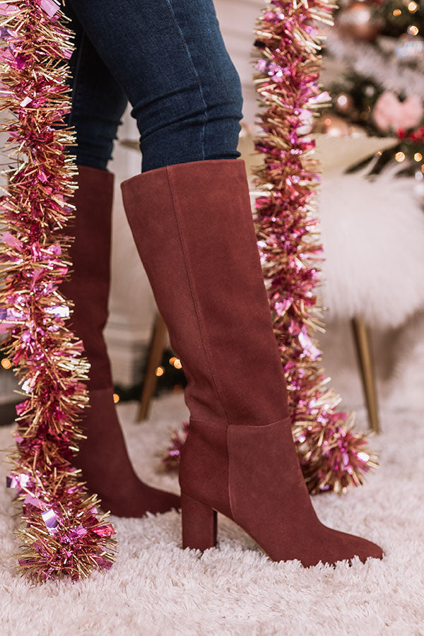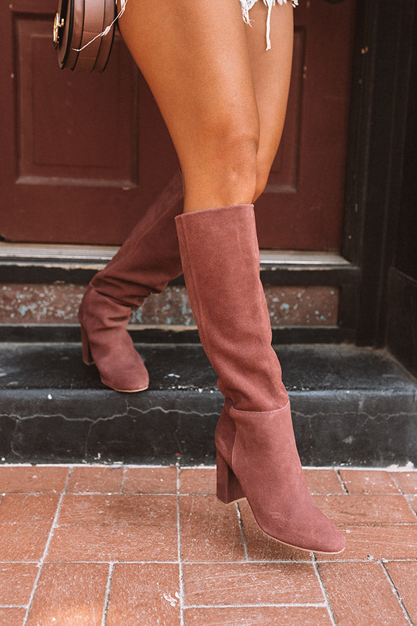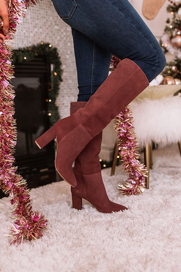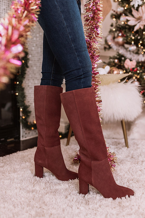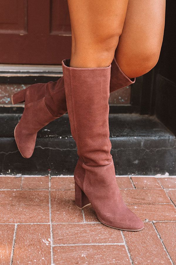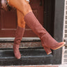 Strut through the colder seasons in style with our chic redwood colored 'Krafty' boot featuring suede material, pointed closed toes, 3.5-inch block heels, and a lightweight slip-on silhouette! This boot runs more true to size. Due to the material the circumference will only fit a calf width of 14 inches or below.