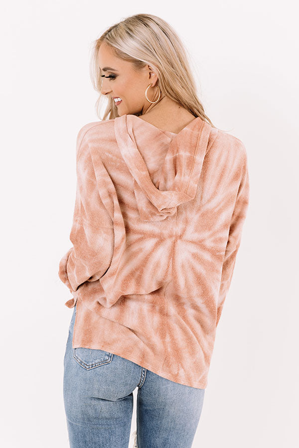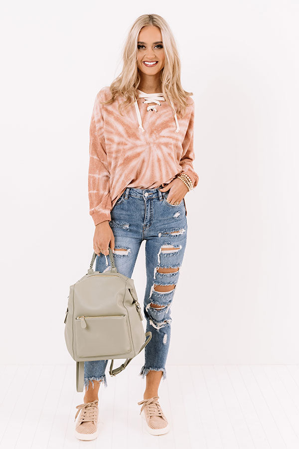 Keep it simple but stylish in our trendy rustic rose hued 'LA Lifestyle' hoodie featuring soft lightweight material patterned with blush tie dye, a lace up v-cut neckline with a hooded back, long loose sleeves with fitted cuffs, and a slouched silhouette that ends in a straight hemline with accent side slits! Measurements