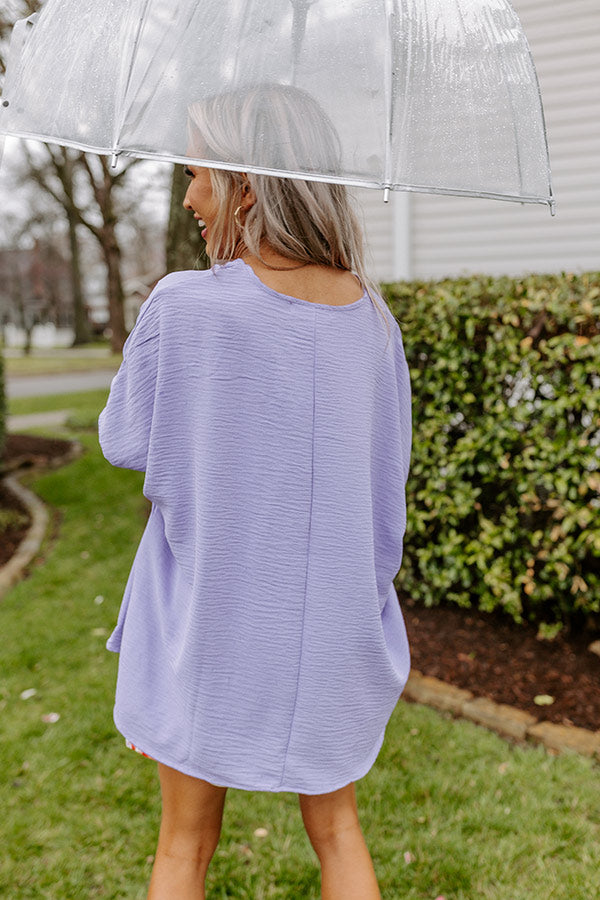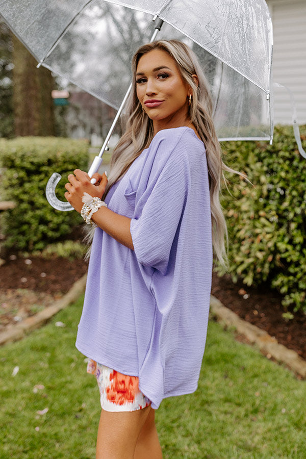 You are sure to look like you live an an upscale L.A. lifestyle with this casual lavender shift top featuring ultra lightweight sleek material, a v-cut neckline, short loose sleeves, an accent chest pocket, and a relaxed silhouette that falls into a rounded hemline! on products