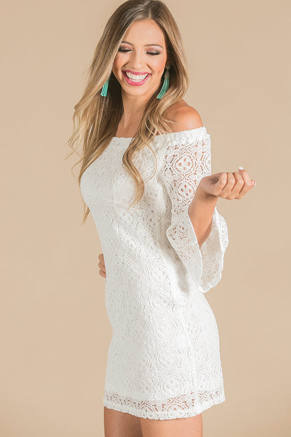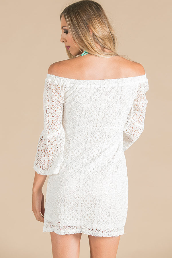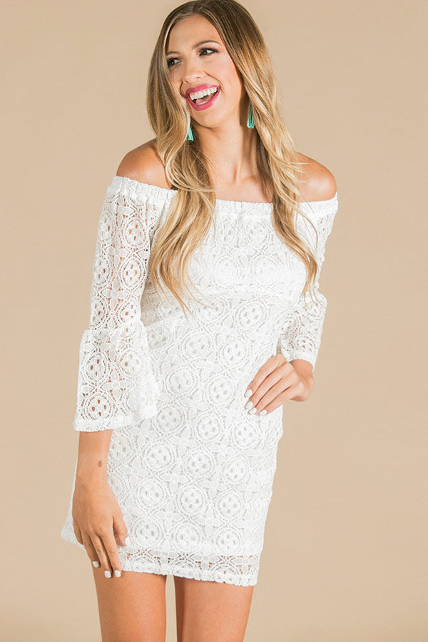 Lace At First Sight Off Shoulder Dress in White