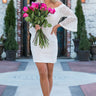 Add some lace to your look with this sweet off the shoulder stunner! The "Lace At First Sight Dress" has an elasticized off the shoulder neckline, quarter length bell sleeves & a breezy shift silhouette. This cutie's simplicity creates an elegant and classic look for any occasion!