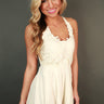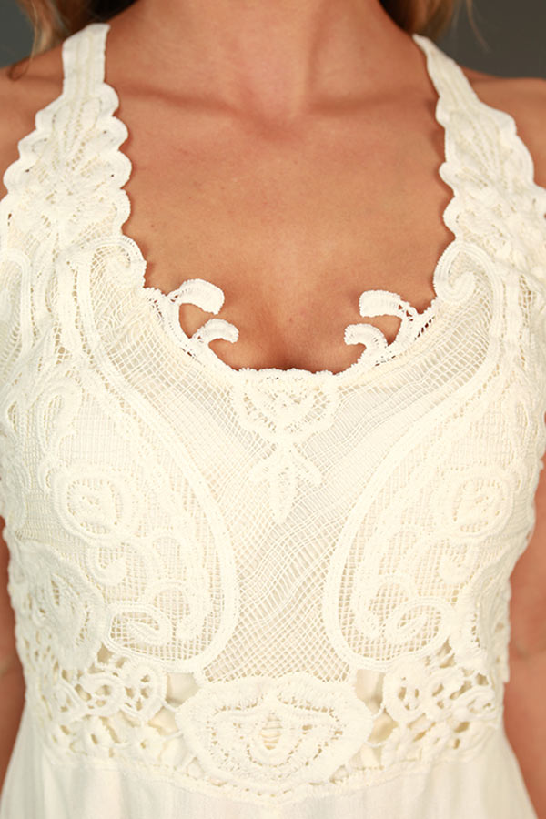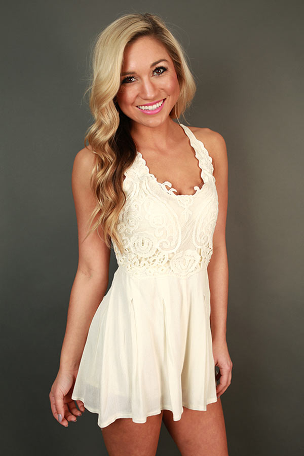 Get ready for a romper that will rock your world! The lace at the bust and lace up back are too pretty to resist! This romper is lined.