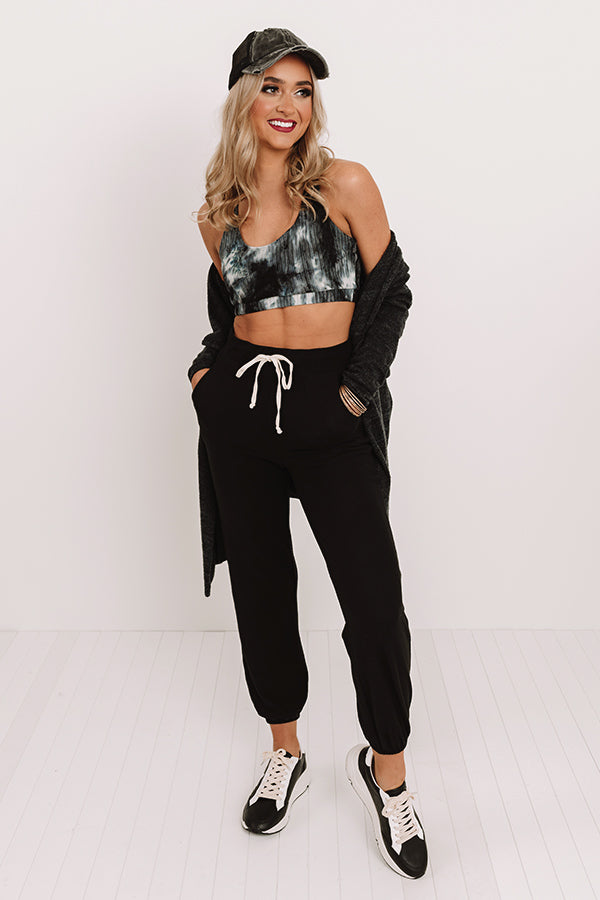 You are sure to be a "lady of leisure" when you wear this adorable lounge bra featuring soft lightweight material with subtle ribbed texturing, a navy and white tie dye pattern, a scooped neckline, a racerback fit with an accent mid-back cutout, and a stretchy flattering form fitting silhouette with a straight elastic waistband!