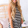 The "Laguna Striped Shift Tank" is the ultimate layering piece! This everyday essential has a high rounded neckline & a relaxed sleeveless jersey knit bodice that will look great styled under all of your favorite cardigans & jackets.